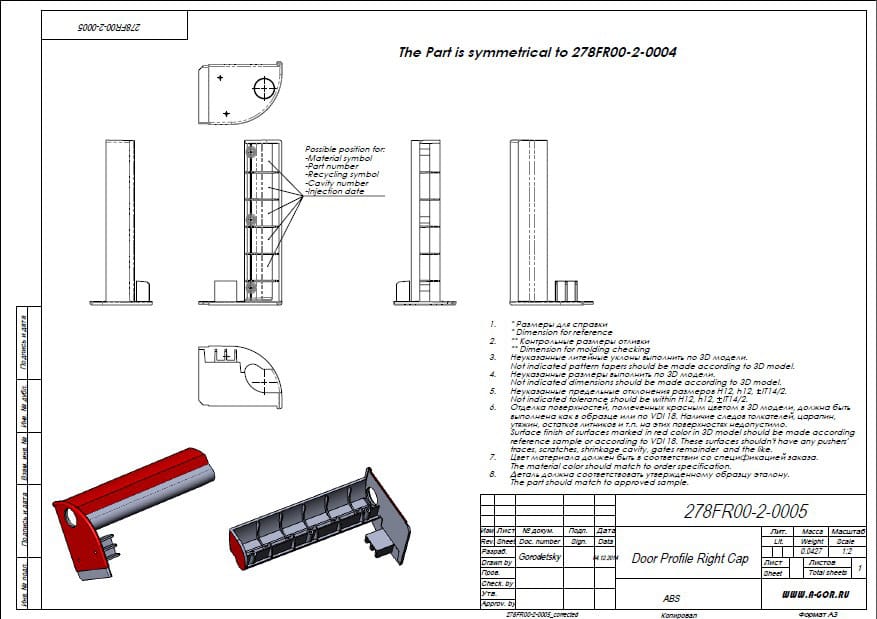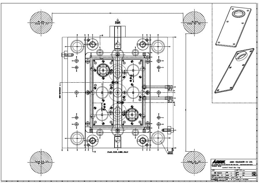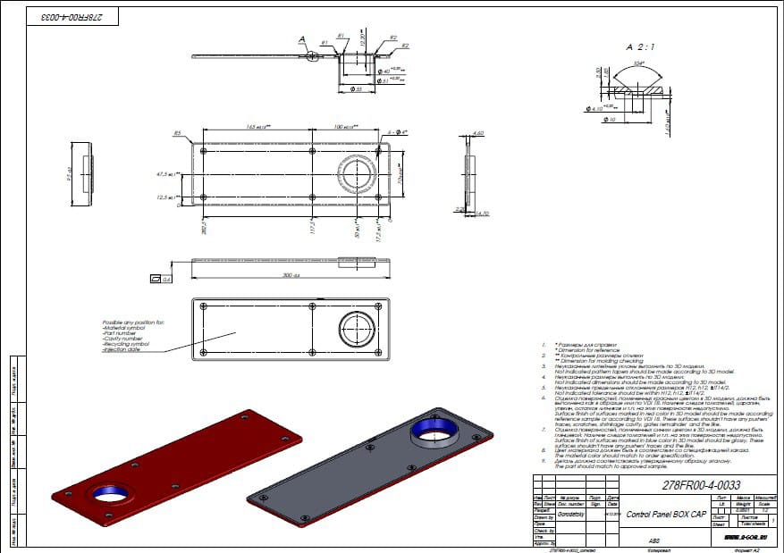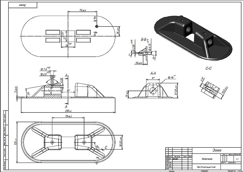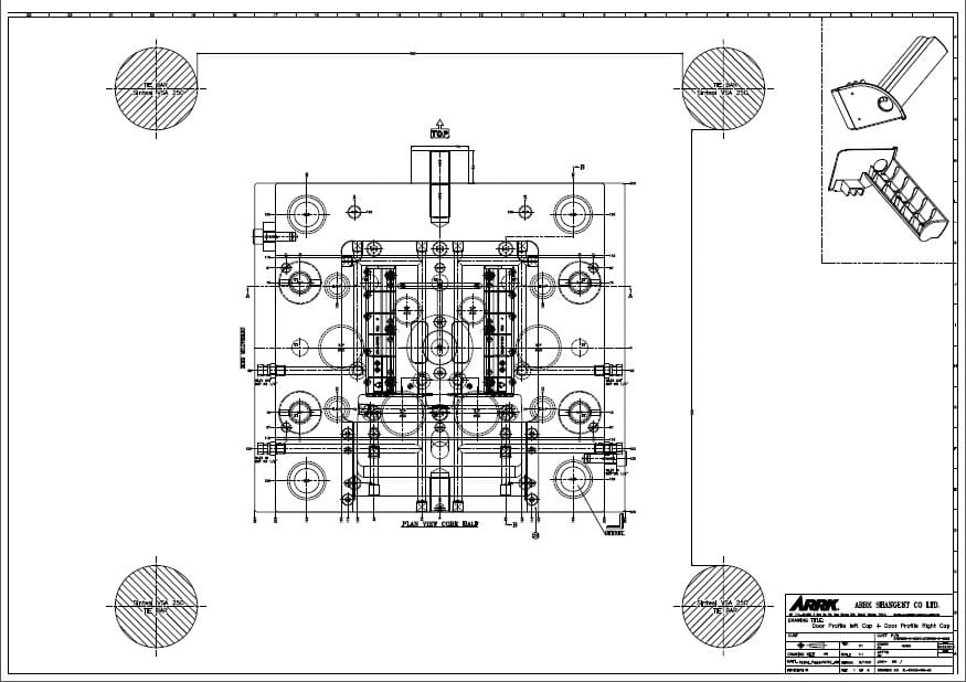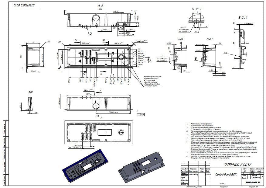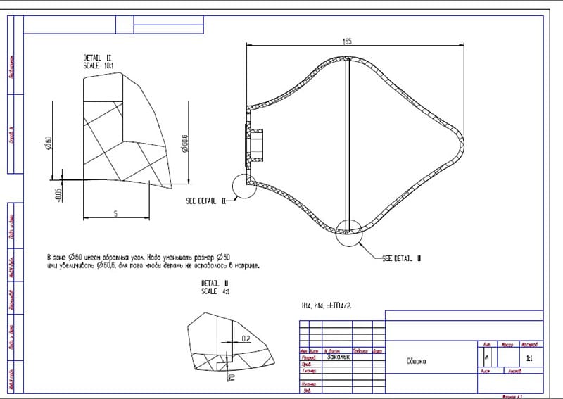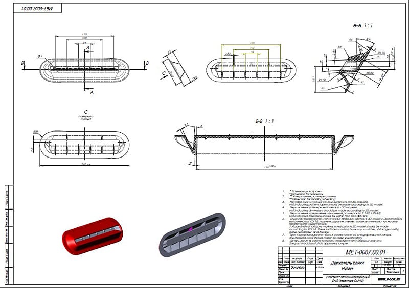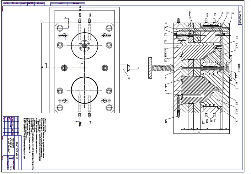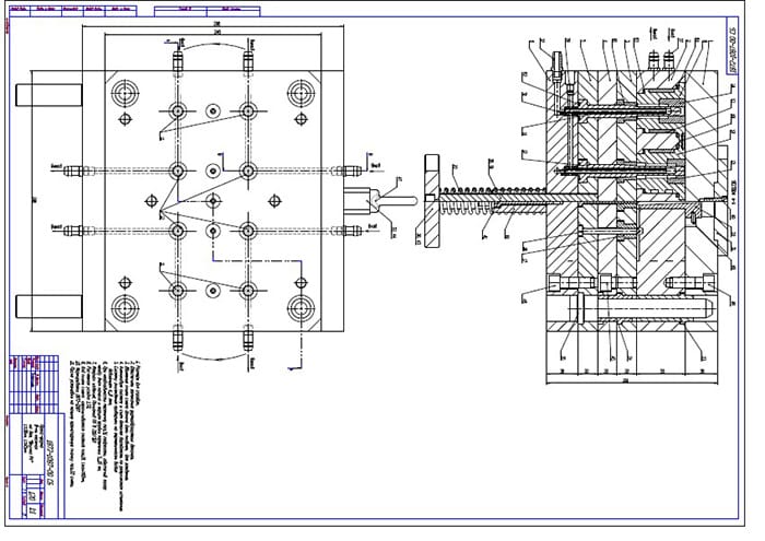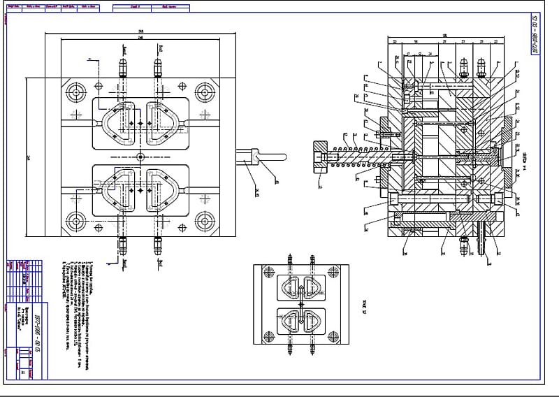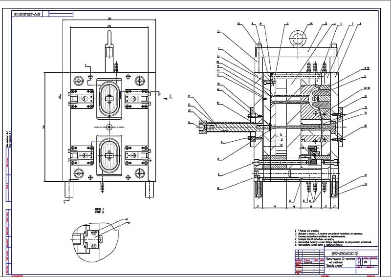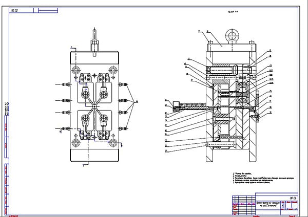 После изучения пластмассового изделия разрабатываются чертежи будущей пресс-формы с детальной проработкой наиболее сложных деталей. К таким относится матрица. В зависимости от конструкции, числа разъемов и сложности готового изделия матрица может быть проработана в нескольких вариантах.
