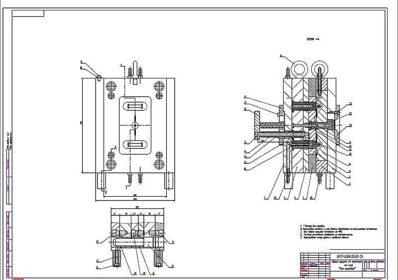 На стадии эскизной проработки необходимо максимально уменьшить число схемных (отъемных) и стержневых деталей. Увеличение числа этих конструктивных объектов приводит к необходимости повышения точности их изготовления, повышает трудоёмкость сборки-разборки пресс-формы, уменьшает долговечность спецоснастки.